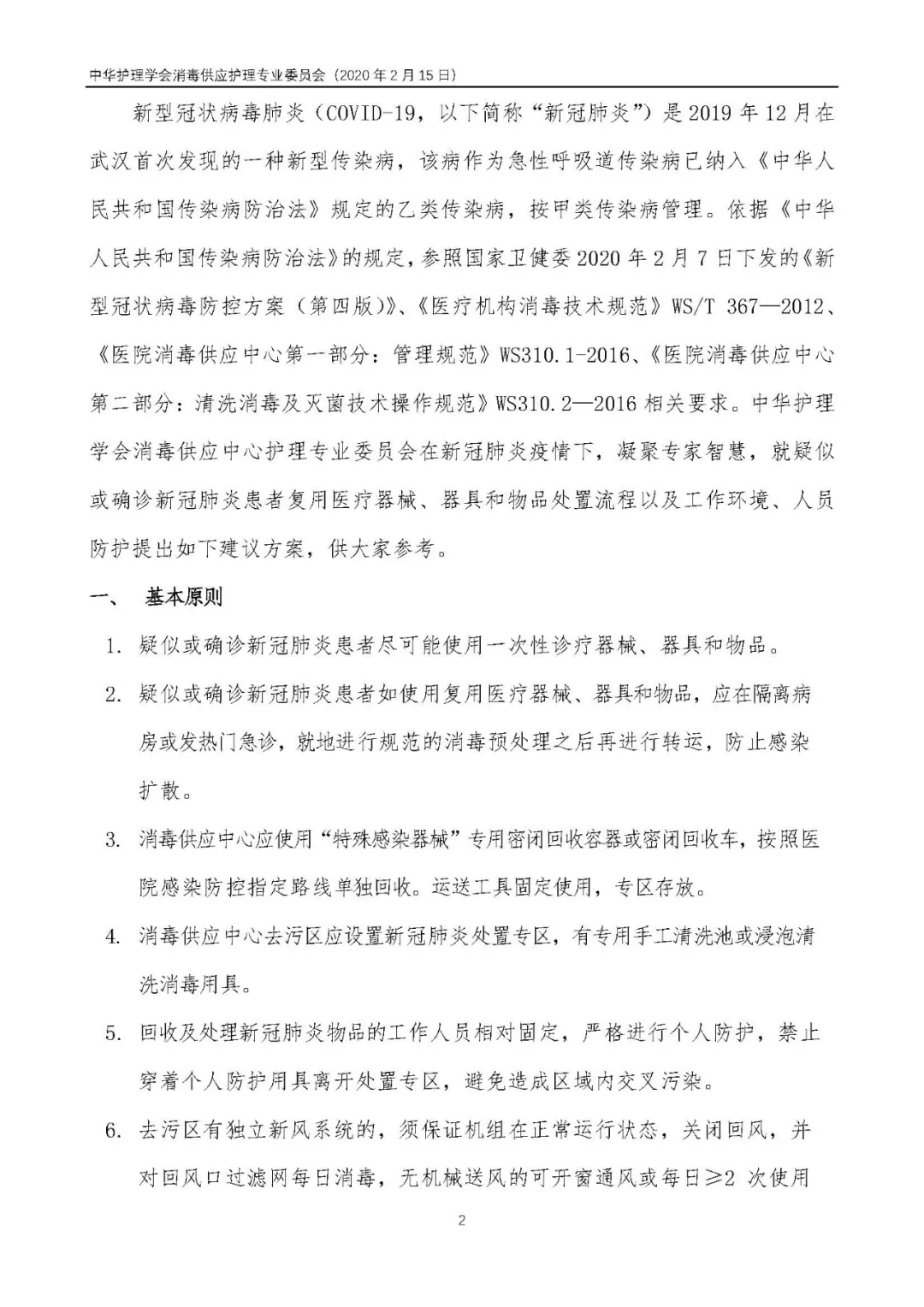 新型冠狀病毒肺炎疑似或確診患者復(fù)用醫(yī)療器械器具和物品處置流程指引建議